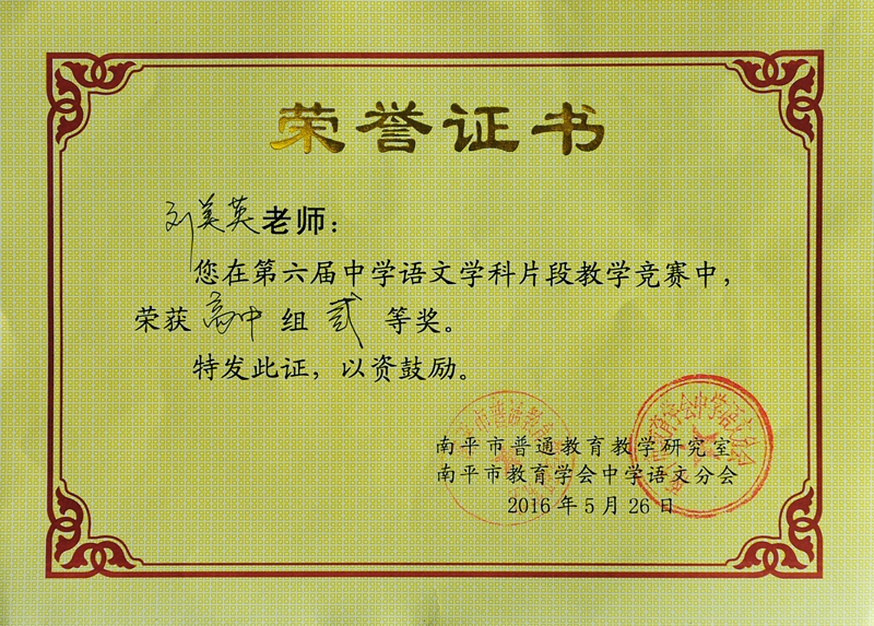 我校教师在“南平市第六届中学语文学科片段教学竞赛”中喜获佳绩