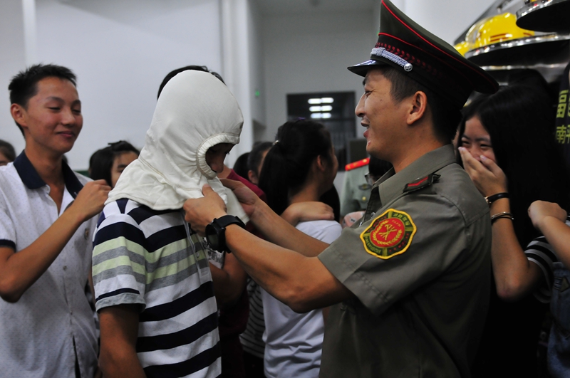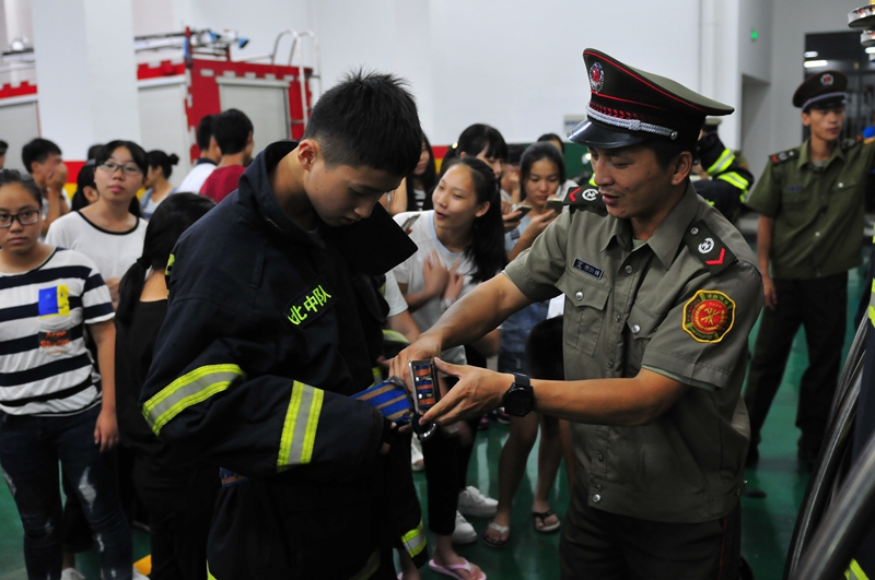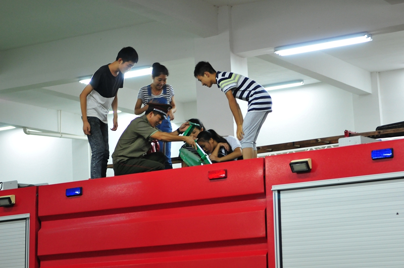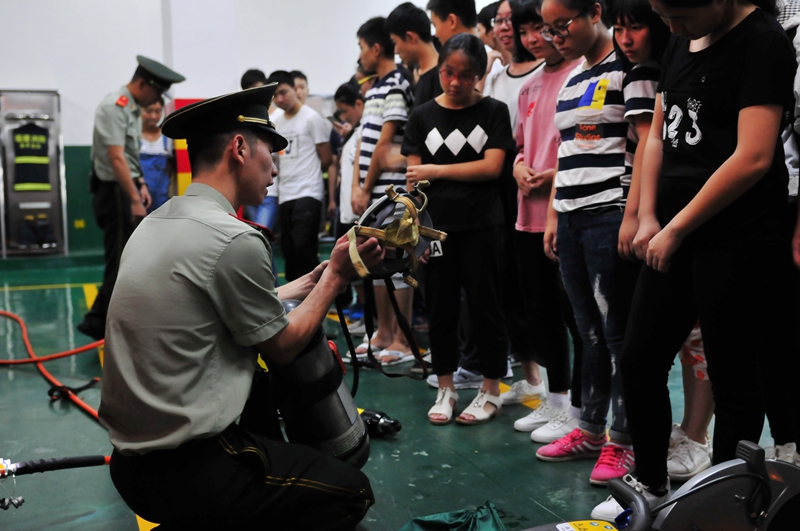 关注消防安全——邵一中学子近距离接触消防战士