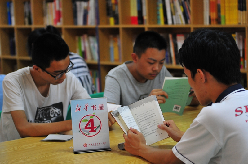 邵武一中“新华书屋”是我校与福建新华发行集团邵武分公司(邵武新华书店)采取“校店协作”形式设立的的又一学生课外阅读场所。现有名著经典、人文哲学、社会科学、名人传记、外文读物等各类图书共六千余册,价值十万元,书屋内的图书由市新华书店提供,有偿使用,定期更新。“新华书屋”的开放时间为周一至周五正常上课时间,下午延长至第四节课。“新华书屋”的正式启用,为学校持续开展课内外阅读教学活动提供了有力的保障,也为我校营造师生良好阅读氛围,全力打造“书香校园”奠定了坚实的基础。