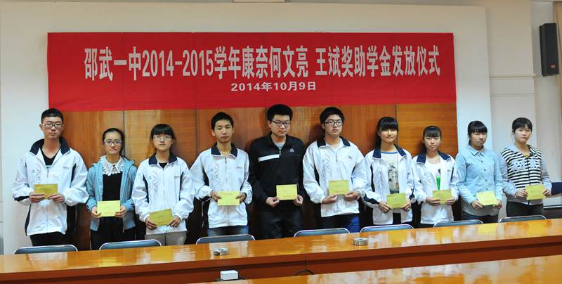 邵武一中举行2014-2015学年康奈何文亮、王斌奖助学金发放仪式