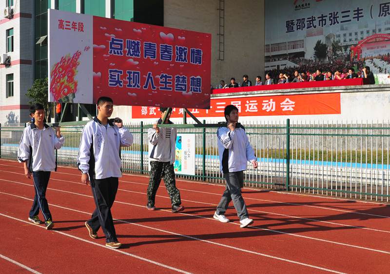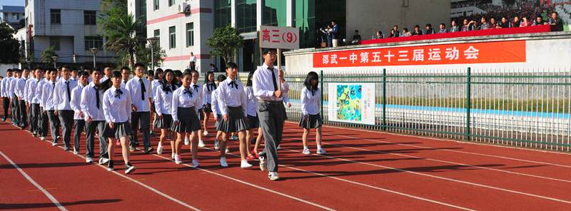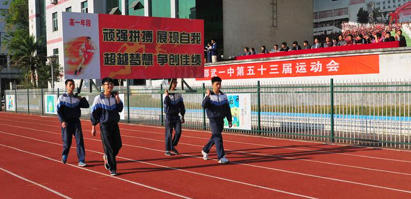22日上午,在雄壮的运动员进行曲中,邵武一中秋季运动会正式拉开帷幕。运动会由杨方副校长主持。入场式上,各班的运动员方队依次进入运动场,他们朝气蓬勃、信心百倍,口号响亮,他们的精彩表现赢得了全校师生的阵阵掌声。在精彩的运动员入场式后,校长郭胜光致开幕词,他希望运动员们要团结协作,顽强拼搏,赛出风格,赛出水平,赛出友谊,全面展现一中师生良好的精神风采。随后,邵武一中第53届秋季运动会正式开始,赛场上,运动员们努力拼搏,不断进取,超越自我,不仅展示了自己的身体素质,更体现了“更快、更高、更强”的运动精神。