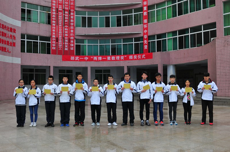 校园新闻 邵武一中举行“两弹一星数理奖”颁奖仪式 作者:admin 来源:本站原创 日期:2016-11-28 人气:2167 上一篇:社会协同治理 安全文明出行——邵武一中学生骑 下一篇:邵武一中举办第十一期中学生业余党校党课培训 通知公告 更多 【瑞榴 • 公告】2026年福建省邵武... 【瑞榴 • 公告】2026年福建省邵武... 【瑞榴 • 公告】2026年邵武一中第... 【瑞榴 • 公告】2026年邵武一中自... 【瑞榴 • 公告】2026年福建省邵武... 【瑞榴 • 公告】2026年福建省邵武... 最新动态 更多 【瑞榴 • 德育】以赛砺师 匠心育... 【瑞榴 • 安全】2026总体国家安全... 【瑞榴 • 安全】联合调研促规范 ... 【瑞榴 • 主题教育】志愿学雷锋,... 【瑞榴 • 社团活动】传承非遗文脉... 【瑞榴 • 优秀校友】情系母校 反... 【瑞榴 • 教研】校际交流促成长 ... 【瑞榴 • 思政课】缅怀先烈志 传... 【瑞榴 • 安全】筑牢安全防线,... 【瑞榴 • 团建】铭记千秋功勋,...