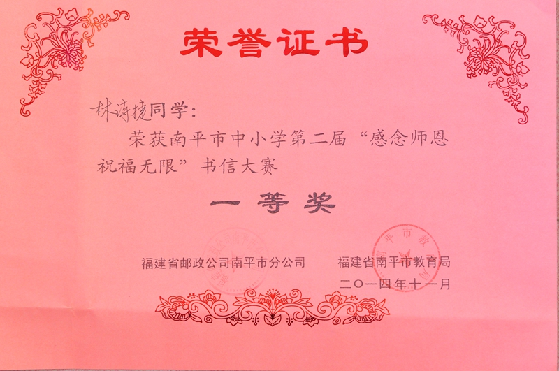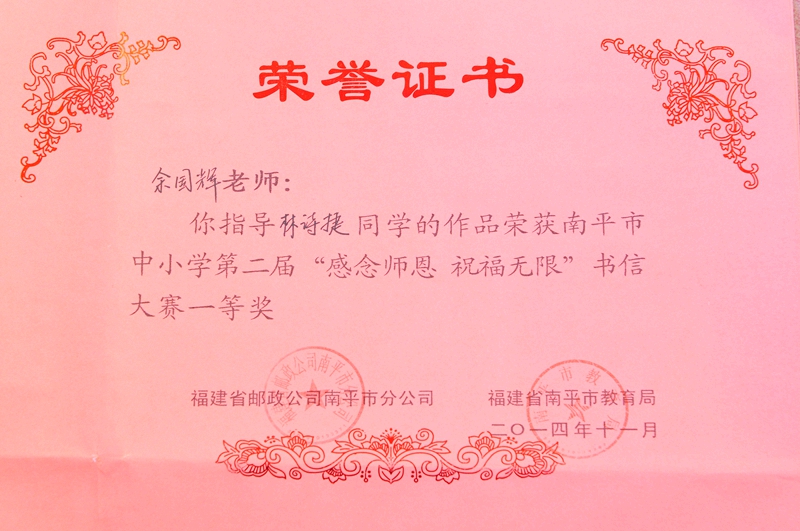 校园新闻 喜报 作者:admin 来源:本站原创 日期:2014-12-08 人气:3030 热烈祝贺我校高一(8)班林诗捷同学南平市中小学第二届“感念师恩,祝福无限”书信大赛一等奖! 上一篇:邵武一中顺利召开第十届第二次教职工代表大会 下一篇:邵武一中开展“宪法在我心中”法制教育报告会 通知公告 更多 【瑞榴 • 公告】2026年福建省邵武... 【瑞榴 • 公告】2026年福建省邵武... 【瑞榴 • 公告】2026年邵武一中第... 【瑞榴 • 公告】2026年邵武一中自... 【瑞榴 • 公告】2026年福建省邵武... 【瑞榴 • 公告】2026年福建省邵武... 最新动态 更多 【瑞榴 • 德育】以赛砺师 匠心育... 【瑞榴 • 安全】2026总体国家安全... 【瑞榴 • 安全】联合调研促规范 ... 【瑞榴 • 主题教育】志愿学雷锋,... 【瑞榴 • 社团活动】传承非遗文脉... 【瑞榴 • 优秀校友】情系母校 反... 【瑞榴 • 教研】校际交流促成长 ... 【瑞榴 • 思政课】缅怀先烈志 传... 【瑞榴 • 安全】筑牢安全防线,... 【瑞榴 • 团建】铭记千秋功勋,...