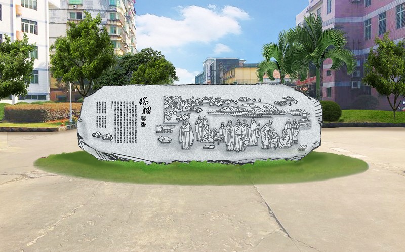 邵武一中具有110年办学历史,为更加美化校园,凸显校园文化,拟在校园主道路上建设主题浮雕一座(如图)正面为邵武一中六字校训:“求真知做真人”及学校历史沿革,背面为《十四金樱十四贤》场景浮雕。因此特向我校校友、书法爱好者寻求墨宝,具体要求如下: