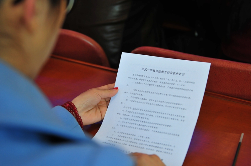 邵武一中全体教师签署“拒绝有偿家教承诺书”