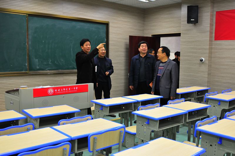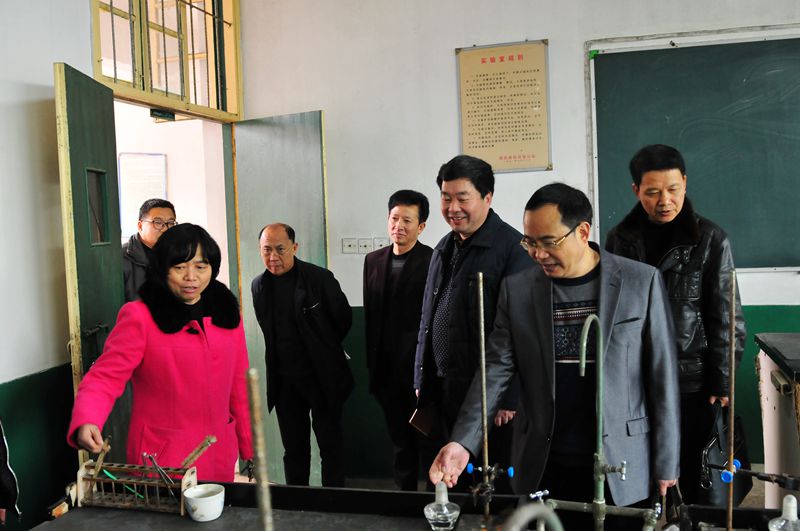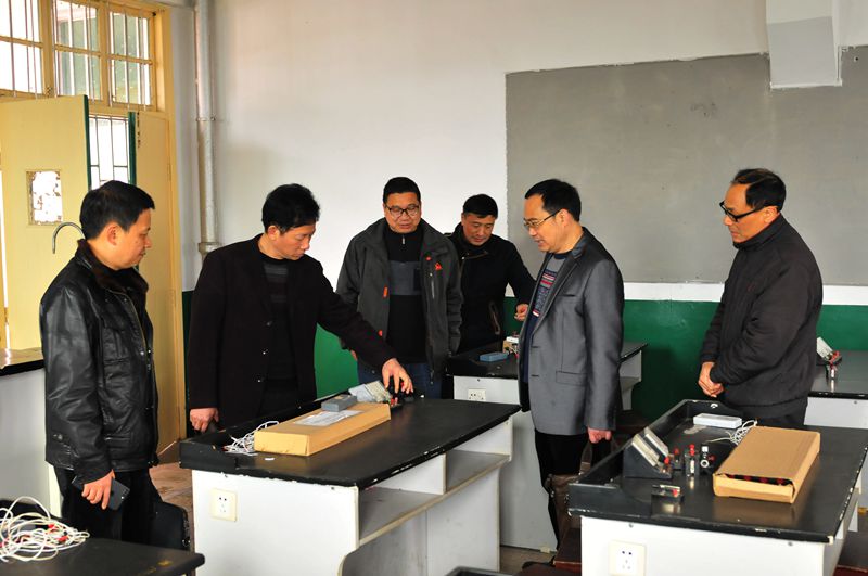 汇报结束后,陈生良局长一行还实地察看了学校网管中心,录播室,理化生三个实验室,以及学生食堂和宿舍。