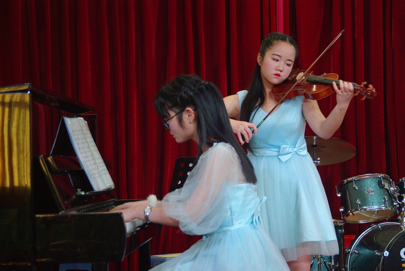 音乐会上,校音乐社全体成员为一中学子们带来一场视听盛宴。音乐会的从灵气十足的钢琴独奏《大鱼印象曲》,到华丽悠扬的钢琴小提琴合奏《命运的华尔兹》;从古色古香又慷慨激昂的古筝朗诵《春江花月夜》,到欢乐十足轰动全场的《魔术先生》,音乐的美妙让现场所有的聆听者无比沉醉……