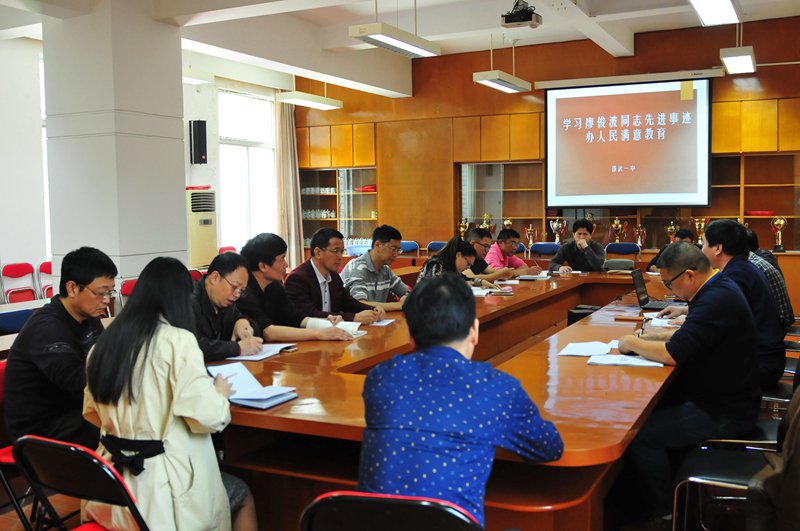 24日上午,邵武一中召开会议专题学习廖俊波同志先进事迹,一中郭胜光校长号召全校教职工学习廖俊波同志信念坚定、对党忠诚的政治品质;敢于担当、苦干实干的务实作风;心系群众、勤政为民的公仆情怀;无私奉献、忘我工作的敬业精神;廉洁奉公、干净做事的高尚情操。近期校党委还将把廖俊波同志先进事迹做为“两学一做”学习教育的专题,认真组织各支部贯彻到每一位党员,迅速掀起学习热潮。