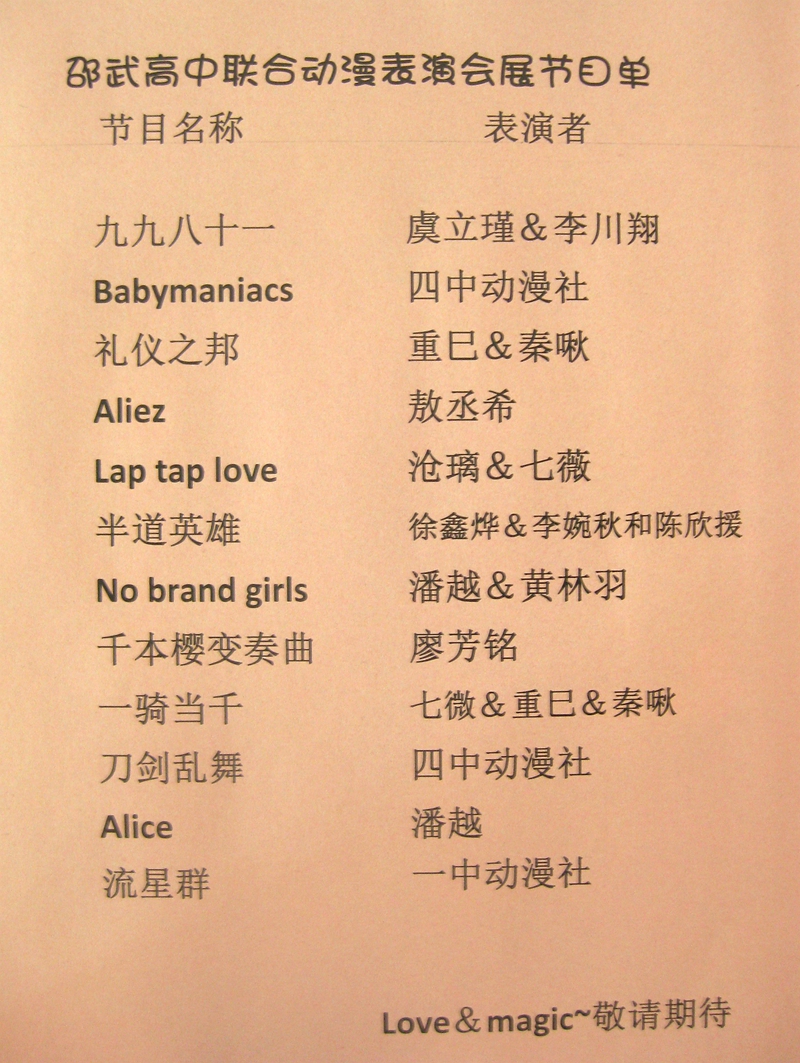 30日下午,邵武一中动漫社联合四中、七中动漫社在一中报告厅成功举办了第一届联合动漫表演会。
