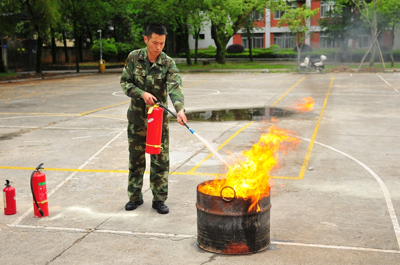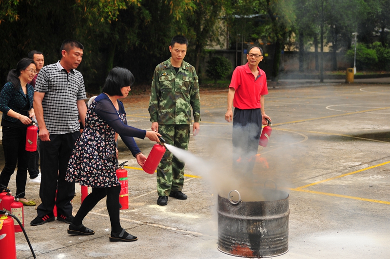 为做到防患于未然,在出现真正的险情时能把风险降至最低,安保办组织学校消防重点科室的有关人员在操场上进行灭火演练,并邀请消防大队战士对老师们进行面对面的指导。