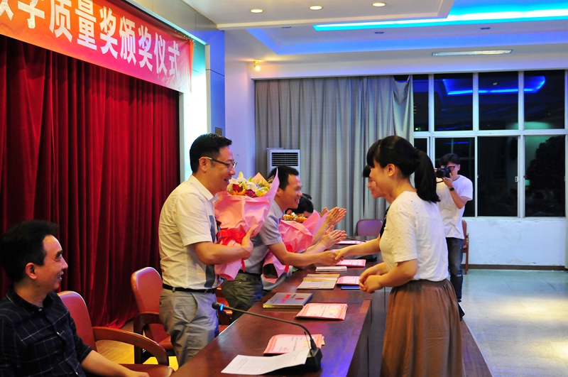 颁奖仪式由杨方副校长主持,他详细介绍了“邵武一中味家教育教学质量奖”的奖励细则和管理办法。邵武一中2017届高三年段在四月省质检取得优异成绩的理科数学与理科语文13位教师以及高中三个年段9位优秀班主任上台领取了荣誉证书、奖品和总计25450元奖金。
