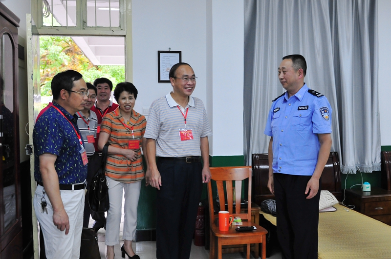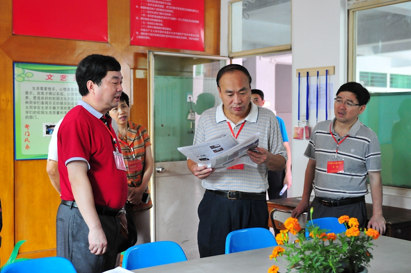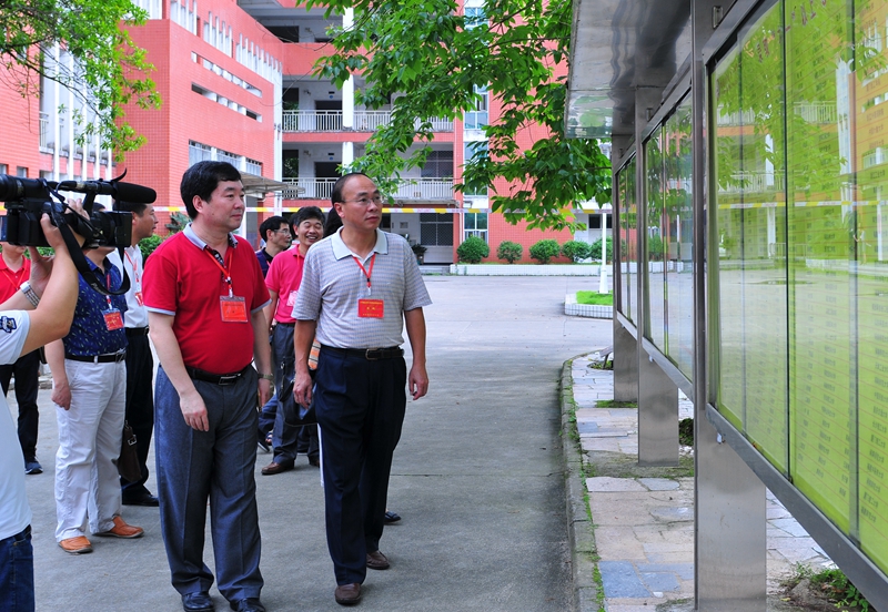 23日下午,邵武市委何光松书记在中考期间莅临我校视察工作,市委常委宣传部部长詹勇、市政府兰美香副市长、市教育局陈生良局长等陪同参观。我校郭胜光校长等班子成员热情迎接何书记一行,并陪同视察。何书记首先来到我校主考室、保密室、监控播音室等进行实地调研,对我校中考工作开展情况予以高度评价。随后,何书记一行来到校团委活动室查看了学生工作开展情况,认真阅读我校校刊,并到校图书馆和校新华书屋调研我校藏书情况,对我校所做的工作表示肯定。