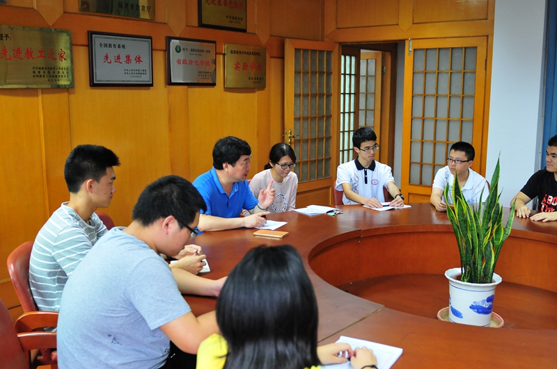 26日下午,我校郭胜光校长在一中校长室与高二理科实验班的8位优秀学子进行深入的交流,分别从“教”与“学”两方面与同学们进行一对一的座谈探讨。