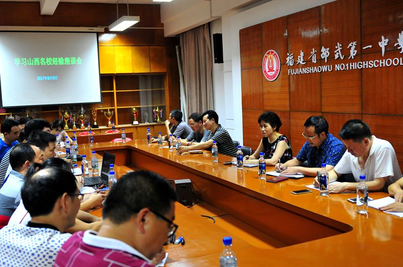 9日晚,邵武一中在校行政会议室召开学习山西名校经验座谈会。一中校行政班子全体成员,各年段长,支部书记,高三年段班主任以及市教育局组织局领导及机关股室负责人50多人参加了座谈会。副市长兰美香,吕立邦,教育局局长陈生良到会并讲话。