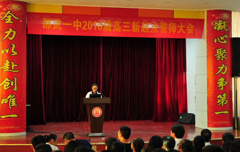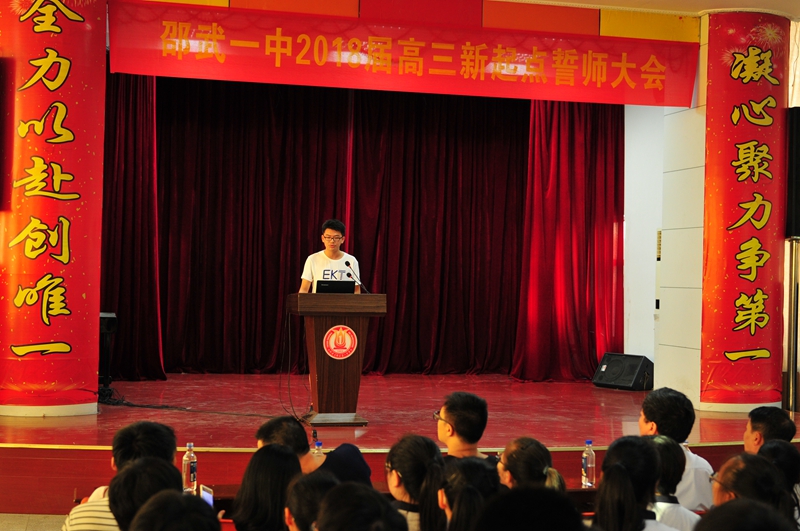 为了使高三学子提振精神、以充沛的精力投入复习,以坚强的毅力投入备战。9月4日,在距离2018届高考还有276天的日子,邵武一中2018届高三年段在校学生报告厅隆重举行新起点誓师大会。会议以沉重雄厚的音乐《秦风·无衣》为引,营造了肃穆而又令人坚定的氛围。“岂曰无衣?修我矛戟。与子偕作!修我甲兵。与子偕行!”正如诗中所写,邵武一中高三全体老师们与学子同袍,共战疆场。