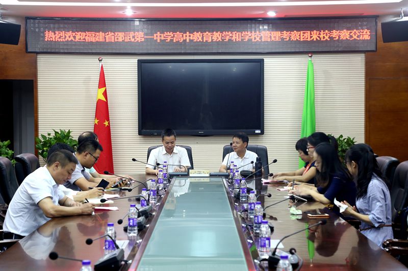 樊希国副校长在校史馆会议厅向邵武一中考察团介绍了学校教学工作的基本情况,随后双方高三年级组长、备课组长就高三备考工作进行了面对面的深入交流。