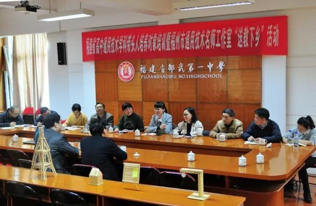 3月15日,福建教育学院通用技术教研室主任丛敏老师、物理教研室主任林冰冰老师、福建师范大学教育学院陈宏敏老师及通用技术省学科带头人等一行十人来到邵武一中,开展福建省高中通用技术学科带头人培养对象培训暨福州市通用技术名师工作室“送教下乡”活动。郭校长对丛老师、陈老师一行的到来表示欢迎,他指出本次省教院来到邵武一中“传经送宝”,对我校通用技术学科的发展有着重要的意义,希望今后能够增进交流,共同促进学科的发展。
