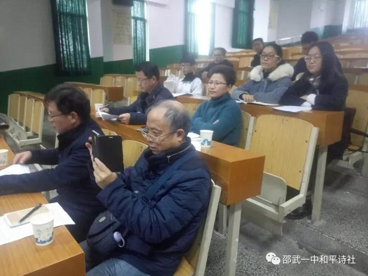 2017年11月26日上午,邵武一中和平诗社举办名为《以“三个巧妙”通变写法作诗》的古典诗词写作讲座,主讲为邵武市诗词学会会长郑德福先生。诗社一共有15位同学参加了此次活动。