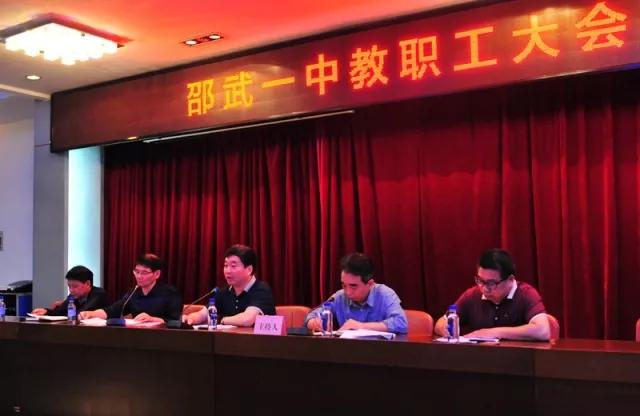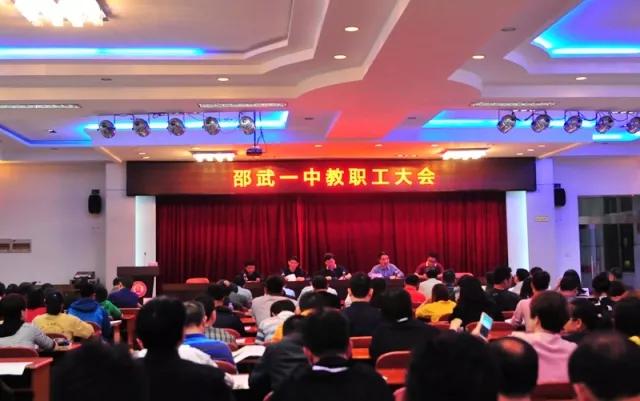 5月10日晚,邵武一中在校教工会议室召开全校教职工大会,杨方副校长主持会议。