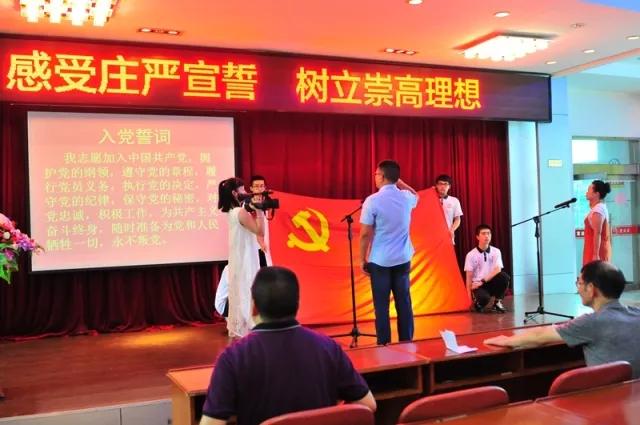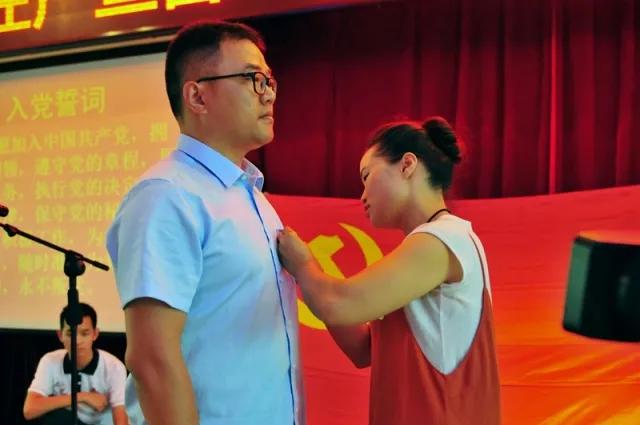 不忘初心方能坚定信念。继而温暖宁老师作入党宣誓仪式,由黄芳老师领誓,并为温暖宁同志佩戴党徽,全体师生以热烈的掌声为此表示庆贺。温老师宣誓后表态,作为一名党员教师,他更要用实际行动来践行自己的誓言,不忘初心,立足本职工作,积极进取。此次的宣誓不仅是个人的承诺,更是全校党员教师回顾入党誓词,唤起初心的契机。
