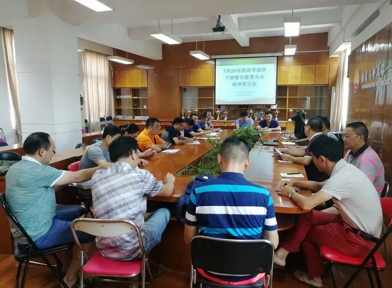 8日上午,中共邵武一中党委于校行政会议室召开“7月20日邵武市领导干部警示教育大会精神学习会”,一中党委、行政一二层领导共22人参加会议。