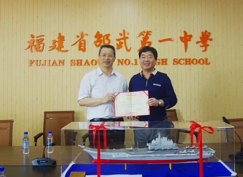 10月4日上午,我校78届校友,中国舰船重工集团方成跃研究员回访母校,并向母校捐赠我国首艘航空母舰模型(辽宁舰),我校郭胜光校长、杨方副校长、宋建民副校长等校领导及刘景鸿老师参加捐赠仪式。
