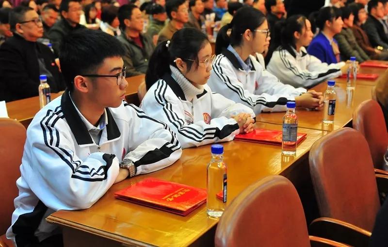 会议表彰了2018年度分别在高考、高一高二统考、中考中获得优异成绩的师生,颁发了优秀班主任奖、管理责任奖,向杜氏、远翔、天宇、味家等8家企业代表颁发了“奖教牌匾”。