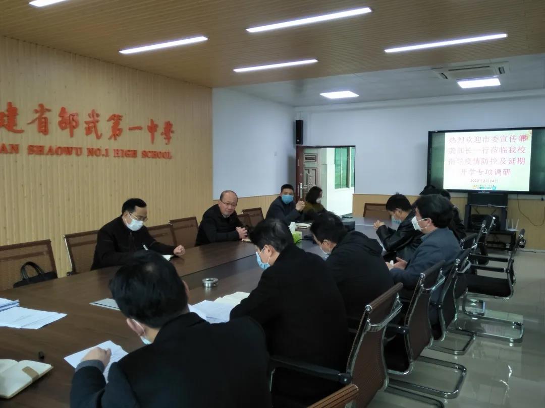 2月24日上午,市委常委、宣传部部长龚建春一行5人来到我校检查指导疫情防控和延期开学专项调研工作。宣传部副部长黄新阳、教育局党委书记、局长陈生良等陪同调研。