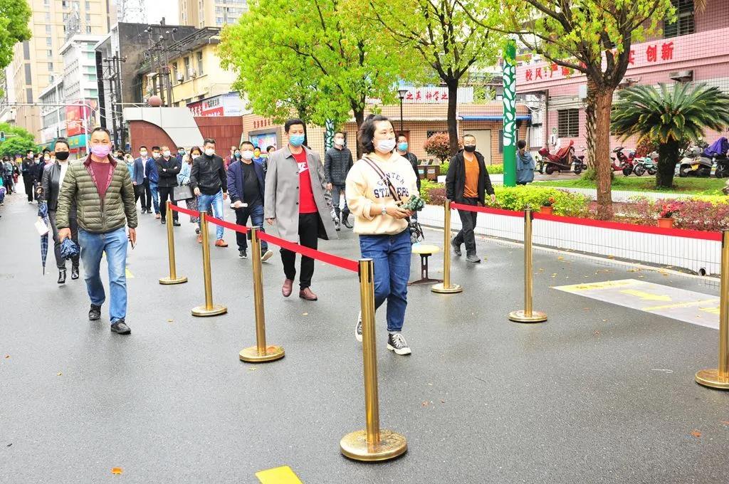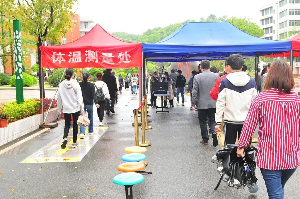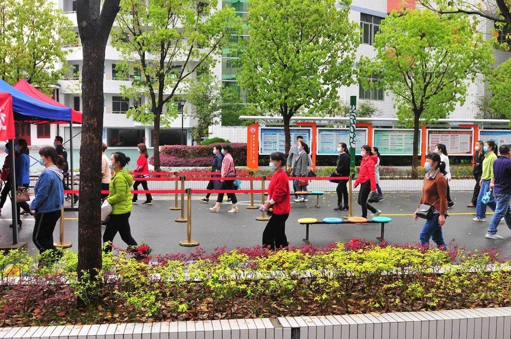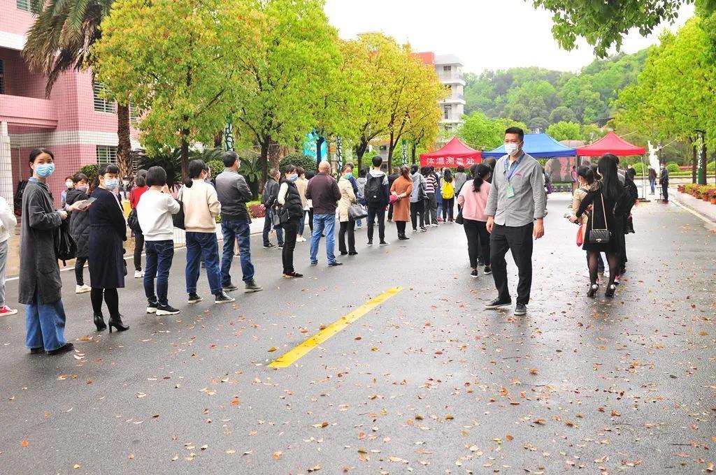 错峰错时按序入校门。提前通知家长们设置了班级错峰时间到校领取省质检答题卡,科学合理,有效避免了进出校拥堵,人员密集的现象。