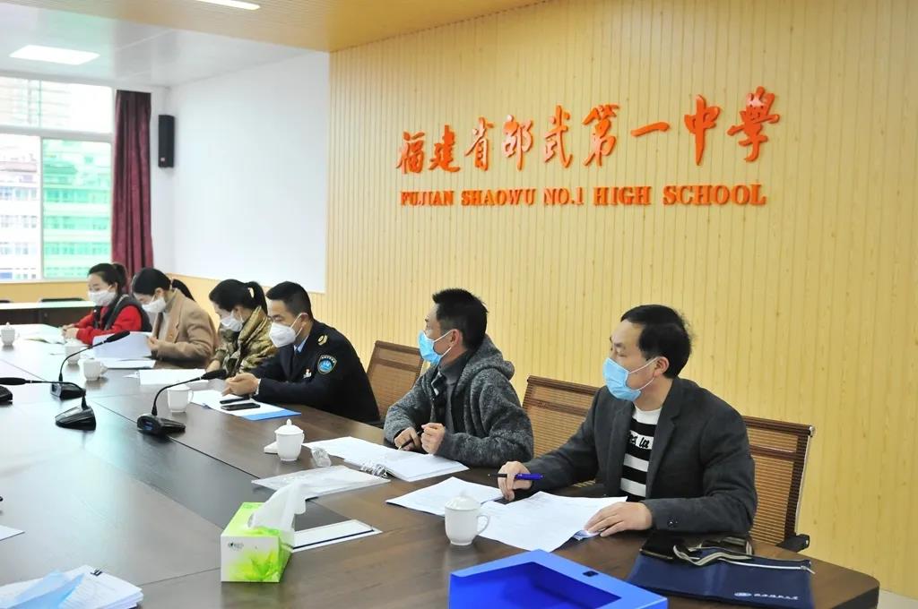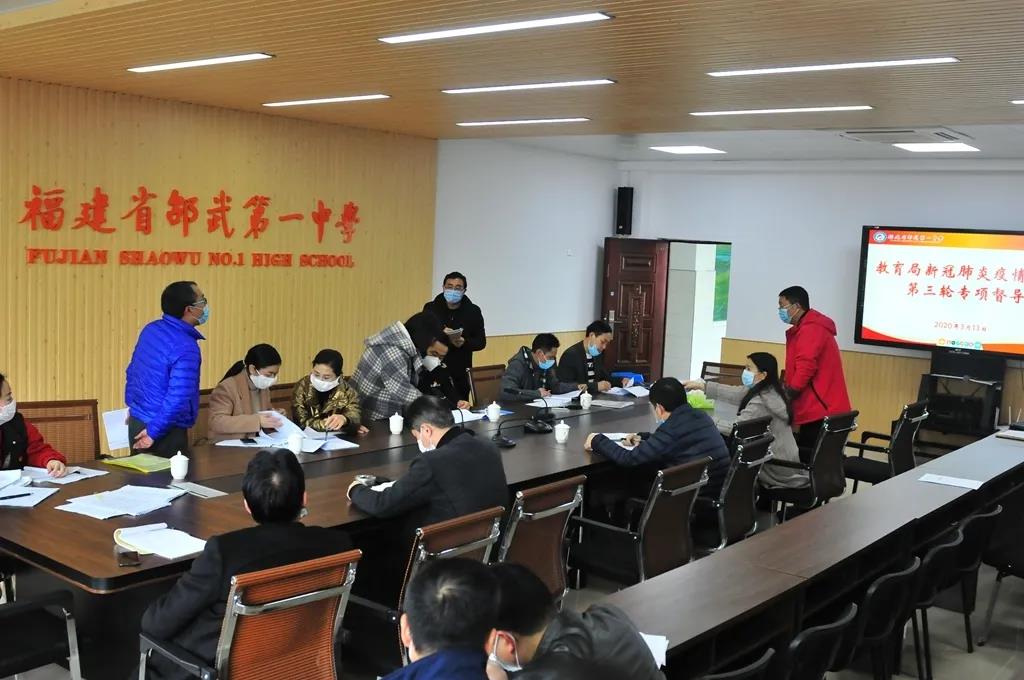 3月13日下午,邵武市教育局新冠肺炎疫情防控第三轮专项督导小组一行6人到我校督查学校疫情防控工作。邵武一中校领导及各工作组组长到会。