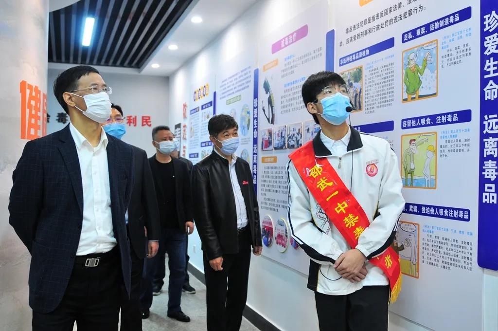 4月27日,福建省禁毒办专职副主任林群一行在邵武市政法委书记夏礼平,副市长、公安局局长郭群,教育局局长陈生良等陪同下视察了邵武第一中学林则徐禁毒宣教室,并了解学校毒品预防教育工作开展情况。