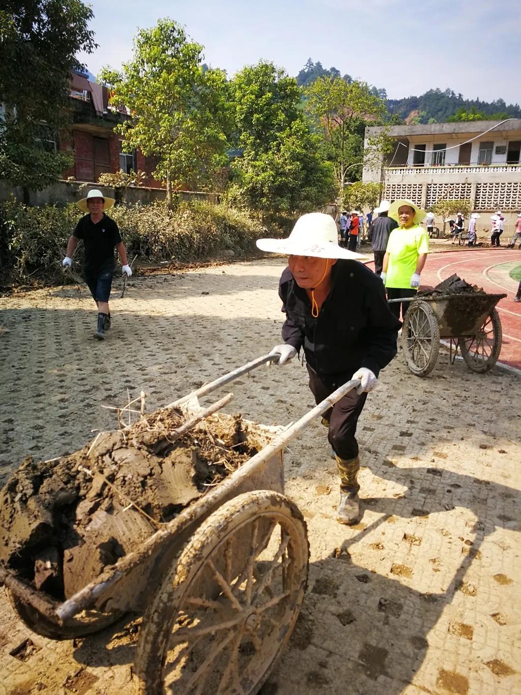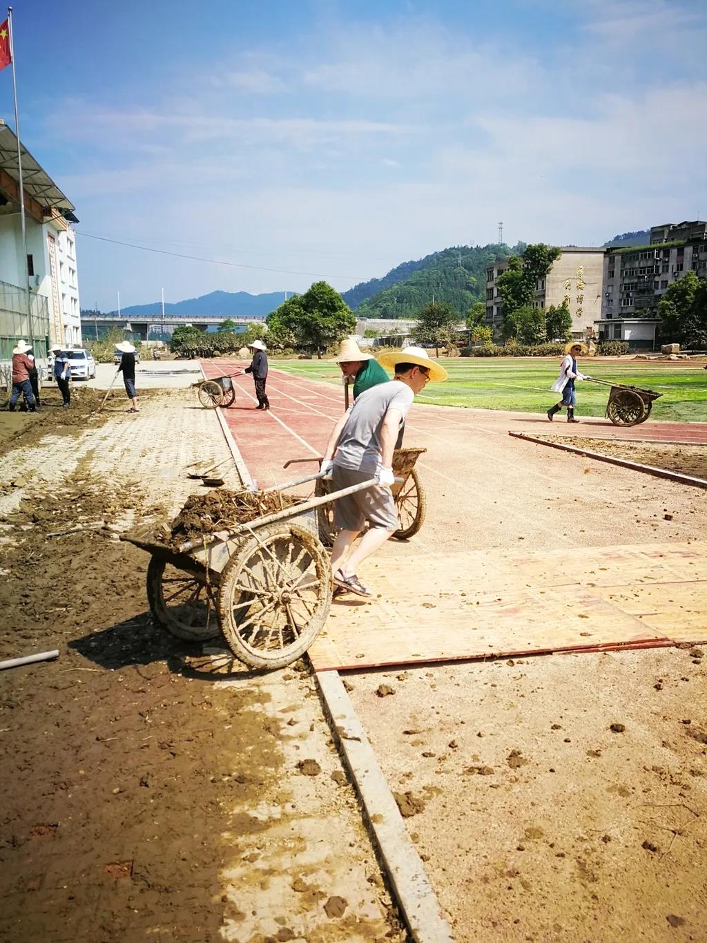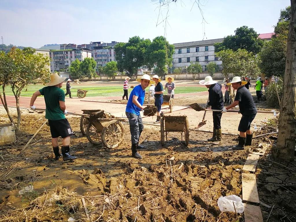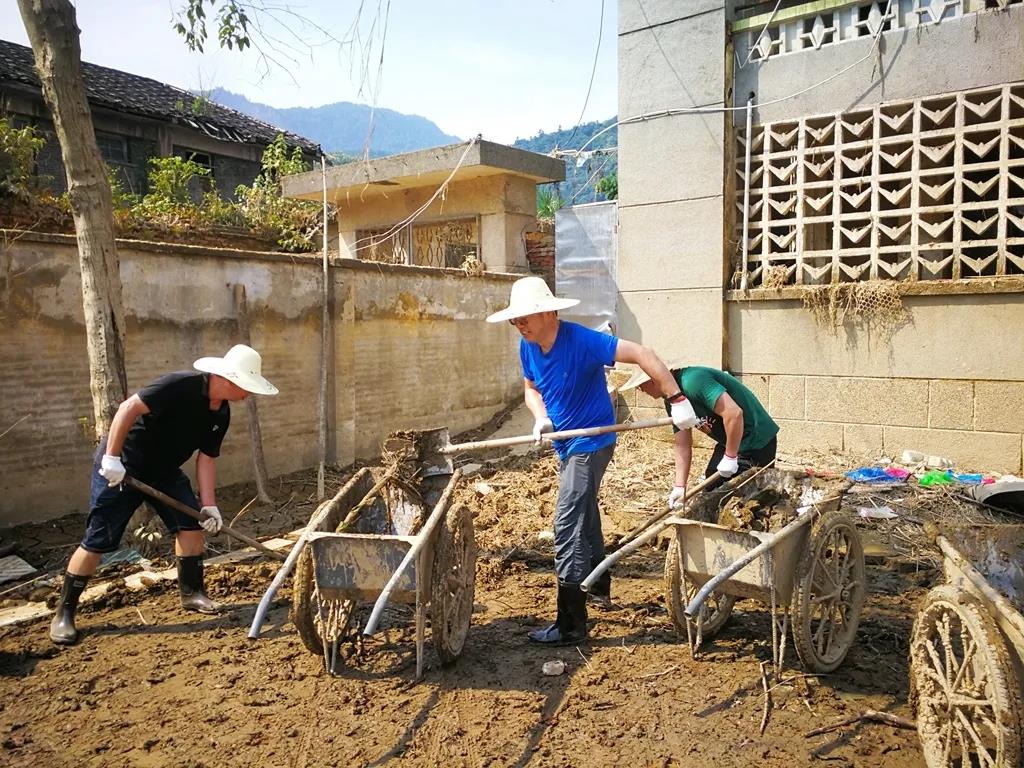 7月15日上午,邵武一中校领导饶干东(原晒口中学校长)、宋建民带队,邵一中党员和教师志愿者第二批共10人,来到晒口善德中小学助力灾后清理工作。