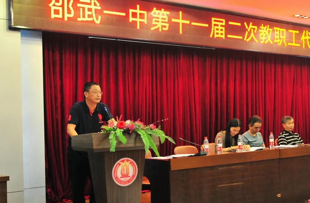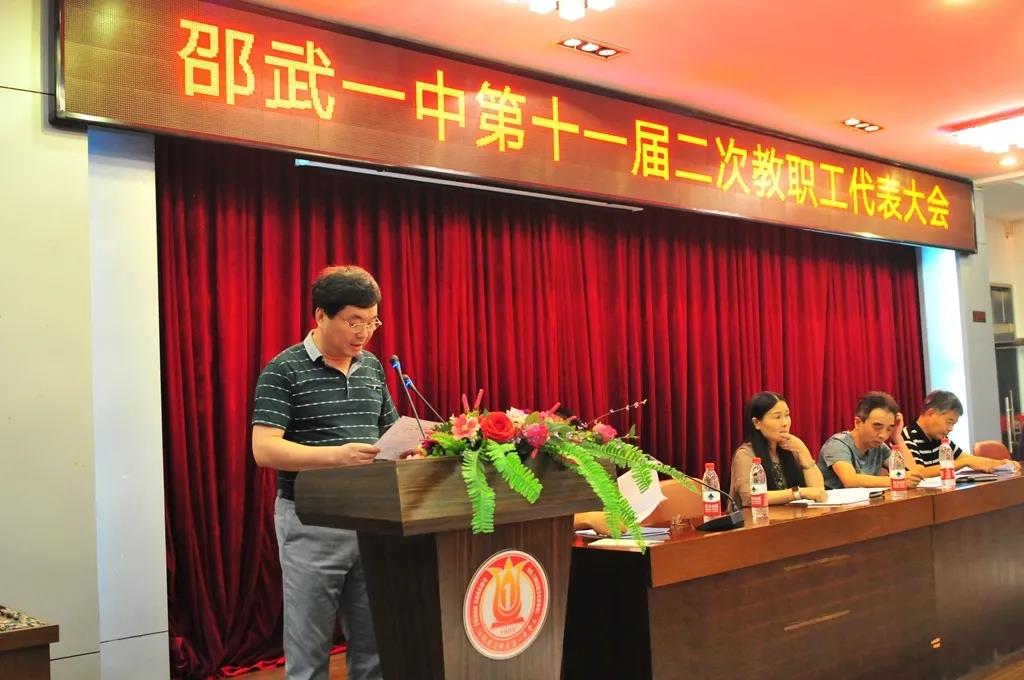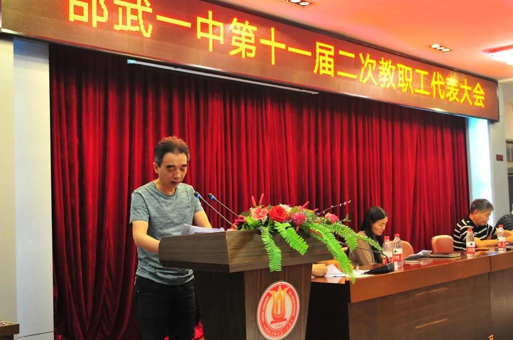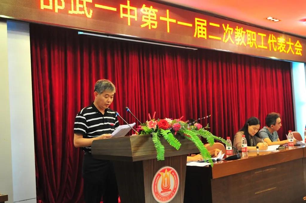 7月 9日晚7点,邵武一中在校教工会议室召开第十一届二次教职工代表大会,共105名正式代表参加会议。大会由校工会主席吴凯民主持。