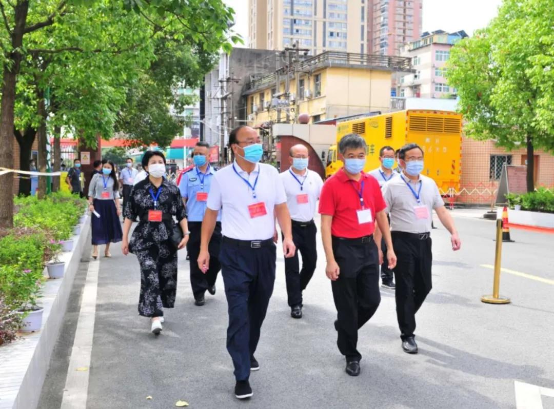 7月7日上午,我市2020年高考顺利进行,1309名考生在邵武考区一中考点参加高考。南平市人大常委会副主任、市委书记何光松,市委常委、宣传部长龚建春,市政府副市长兰美香,市政府副市长郭群亲临考点巡考。