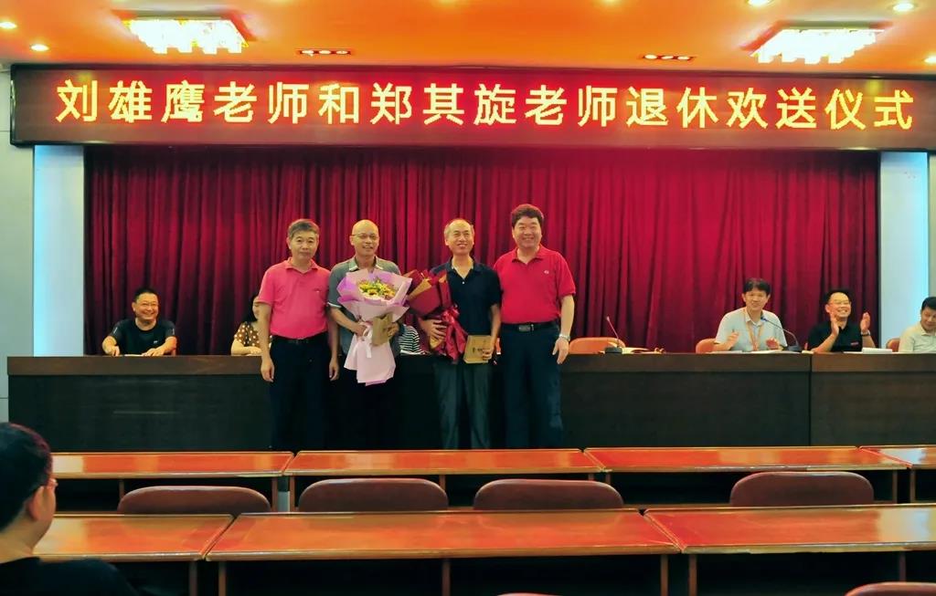 大会伊始,邵武一中全体教职工为刘雄鹰和郑其旋两位老师举行了退休欢送仪式,并由吴萌校长与郭胜光书记分别为两位老师献上退休礼品和鲜花,衷心感谢两位老师多年来为学校做出的贡献,并祝福他们开始自己全新的人生规划,同时也希望两位老师能继续关心、关注邵武一中的发展。