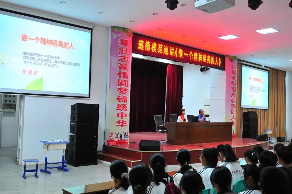 2020年9月23日,邵武一中高级教师、邵武市第三届道德模范、南平市第七届道德模范黄勇英老师到邵武一中现代教育中心二楼学生报告厅进行道德模范巡讲,她巡讲的题目是《做一个精神明亮的人》。
