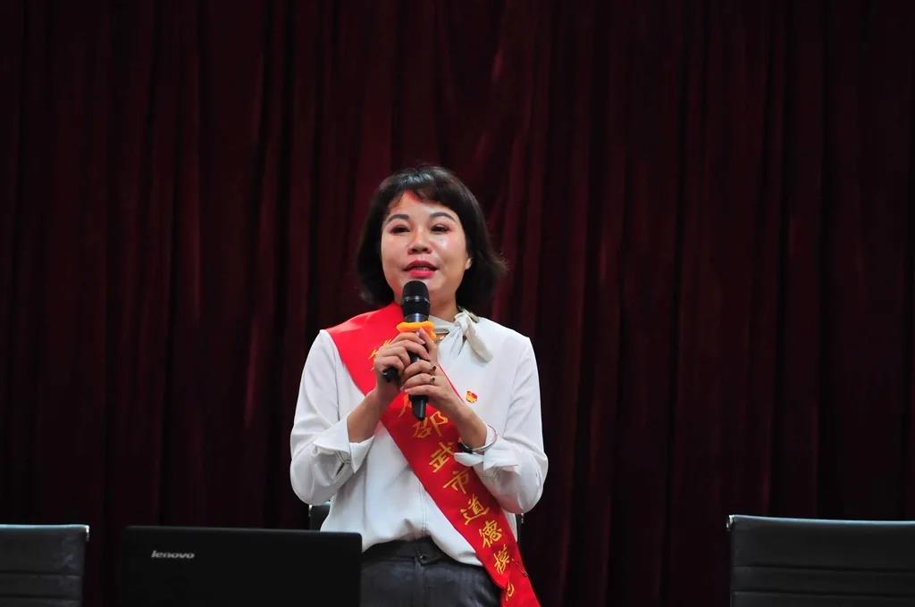 黄勇英老师主要从创办文学社团,培养学生文学素养;扶残助弱,热心奉献;阅读分享、充实人生三个方面,用朴实的文字、生动的图片就其助人为乐的事迹做了宣讲,她的精彩宣讲给师生们上了一堂生动的道德课,让大家深受激励和鼓舞。