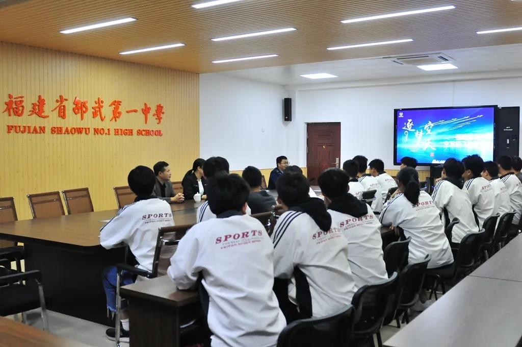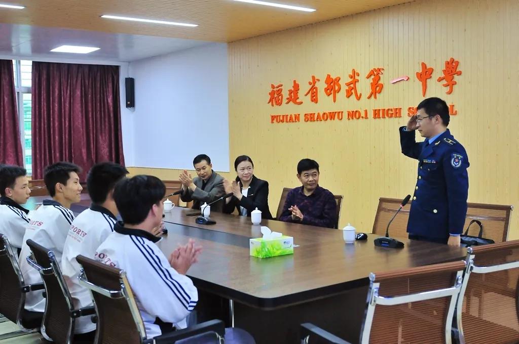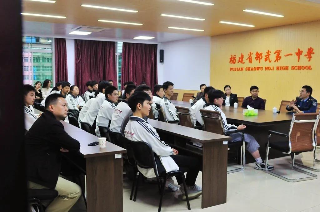 11月3日下午, 邵武一中2021届高三毕业班空军招飞宣传推介会在我校行政会议室召开。经各班主任初选,高三年段共42位同学参加了本次推介会。空军招飞局南京选拔中心工作人员熊杰为到场的同学们做了精彩的宣传和推介。吴萌校长、市教育局招生办负责人刘彩、副主任郑学良陪同参加。