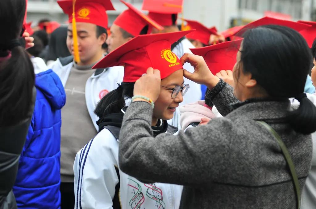 门的两侧,一侧是稚嫩与懵懂,一侧是成人与责任,同学们与家长携手有序地走过成人门。雏鹰终将振翅高飞,十八而志,不负期盼,不负家国,不负青春!