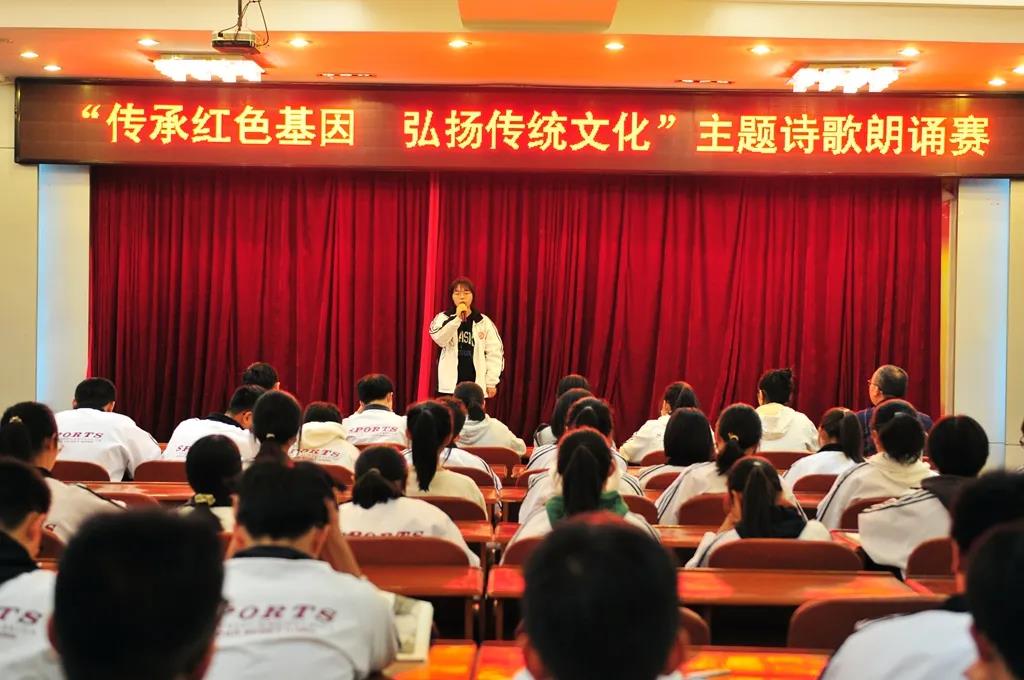 为进一步贯彻落实《中小学图书馆(室)规程》(教基〔2018〕5号)、《关于加强中小学影视教育的指导意见》(教基〔2018〕24号)等文件精神,推动中小学生阅读素养、人文素养及影视戏剧教育项目顺利实施,弘扬祖国优秀传统文化,树立求真知做真人的理想信念,培养学生对祖国诗词的学习兴趣,提高诵读和鉴赏能力,10月18日下午邵武一中语文教研组举办以“传承红色基因,弘扬传统文化”为主题的诗歌朗诵比赛,吴萌校长、赵纯锋主任观看了这次比赛。