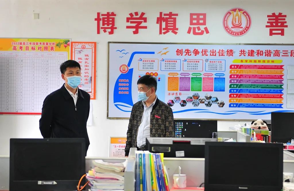 随后,陈书记到高三年段办公室,向在教育教学一线的高三毕业班老师们致以亲切问候和诚挚感谢,与校领导和老师进行了交流。