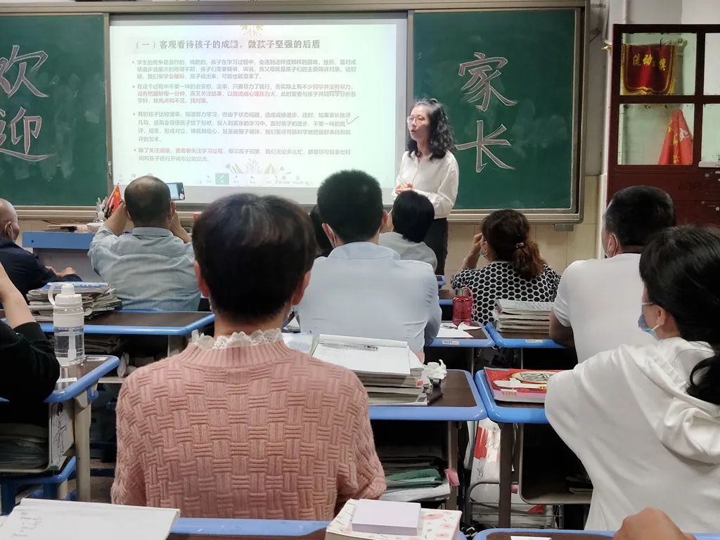晚上7:20,家长大会继续在学生报告厅举行,然后回到各班级由班主任就期中考试成绩、学生日常表现、学校常规要求、班级管理、期望家长配合事项等向家长们作了介绍,同时,各科任老师依次进班级与家长就各学科的高中学习特点、学科要求、学生学习习惯的培养等提出了指导性的意见。会后,家长们进入教师办公室与老师进行了个性化的深入交流。