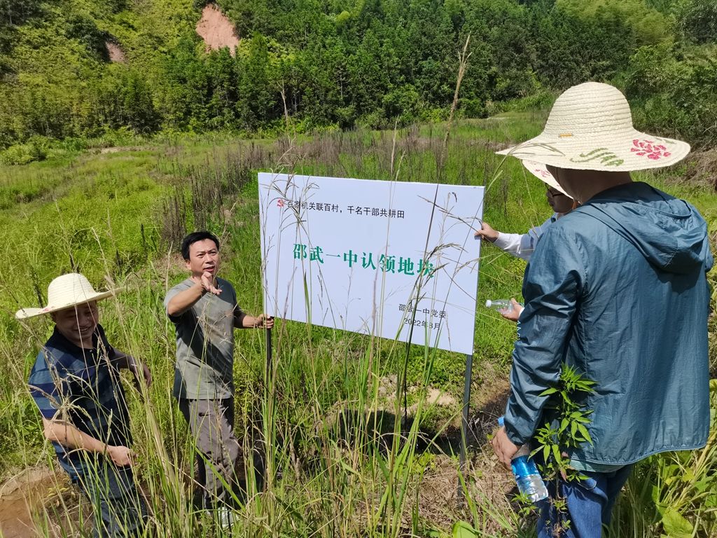 为深入贯彻习近平总书记关于国家粮食安全的重要论述,认真落实党中央、省委、南平市委和邵武市委部署要求,深化我市“百千工程”行动部署,着力破解农村耕地撂荒问题,助力乡村振兴。8月14日上午,邵武一中党委组织党员来到沿山镇百樵村、砂坑村,开展“百家机关联百村,千名干部共耕田”主题党日活动。认领地块,以实际行动保障粮食安全。