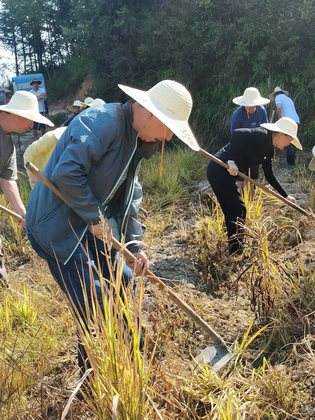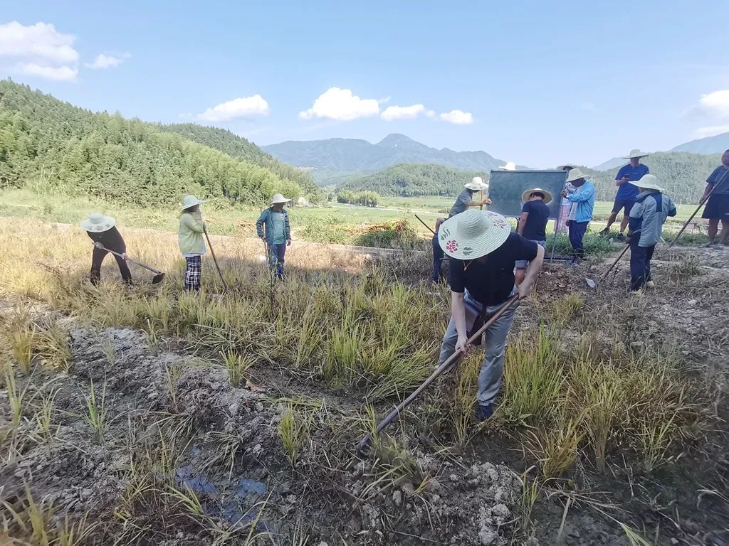 党员教师们顶着烈日,热情高涨,除草、翻地……大家团结协作,干劲十足,田中一片繁忙景象。大家用汗水和辛劳,默默为秋天的收成而努力。