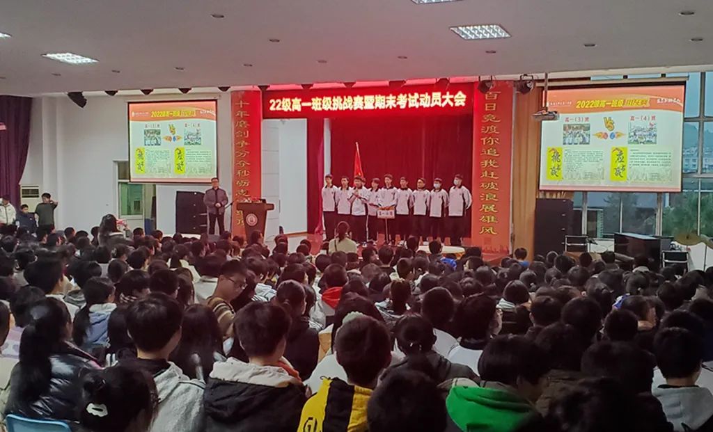 天行健,君子当自强不息。期末将至,为增强高一各班级凝聚力,提升学生自信心,激励同学们冲刺2023年1月南平地区联考的豪情,我校特于12月7日下午在学生报告厅隆重举行邵武一中首届班级挑战赛暨期末考试动员大会。本次大会由温暖宁段长主持,许俊斌校长出席了此次活动。
