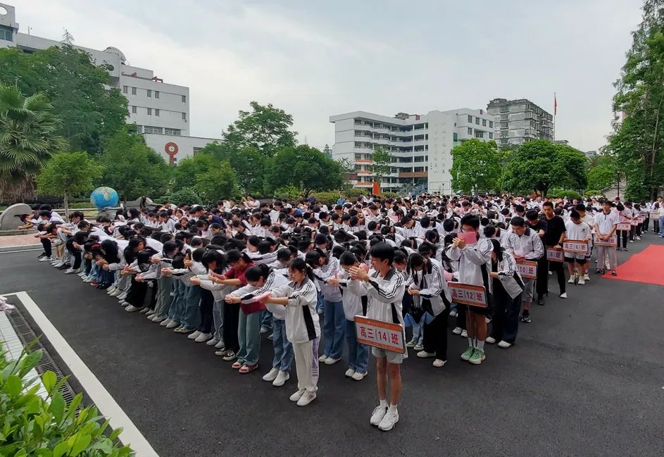 邵武一中学子应学习朱子格物致知的精神,为学习助力。2024届高三675名学生端身正立,整肃衣冠,拱手高揖,四拜朱子。