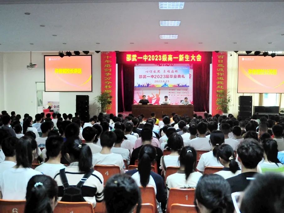 7月23日,邵武一中2023级高一新生家长会及学生大会在学生报告厅举行。两位年段长向家长及同学们介绍了学校的基本情况,许俊斌校长总结发言,希望同学们做“爱校、友善、自觉、优秀”的一中人。