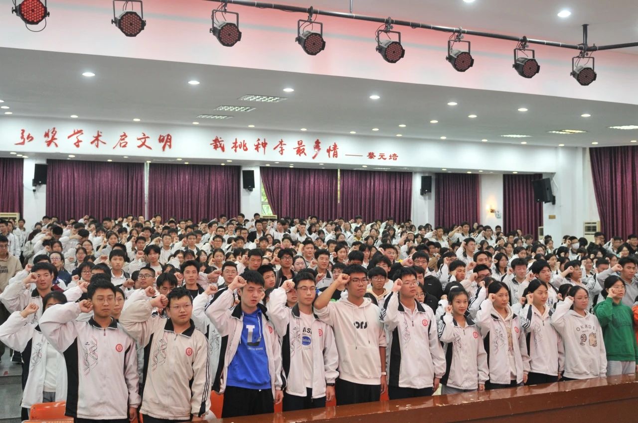 会上,学生代表傅钰琳同学带领全体同学庄严宣誓,誓言声如战鼓,铮铮不息,展现了同学们奋发向上的精神风貌。