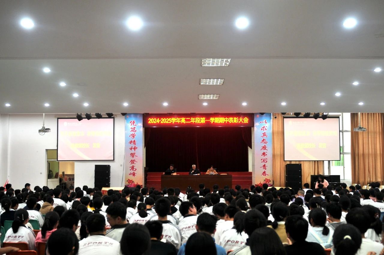 11月9日,高二年段第一学期期中表彰大会在学生报告厅举行。大会旨在表彰优秀学子,回顾总结学习历程,激励全体师生持续奋进。许俊斌校长、余国辉副校长、温暖宁副校长及高二年段全体师生共同见证了这一时刻。