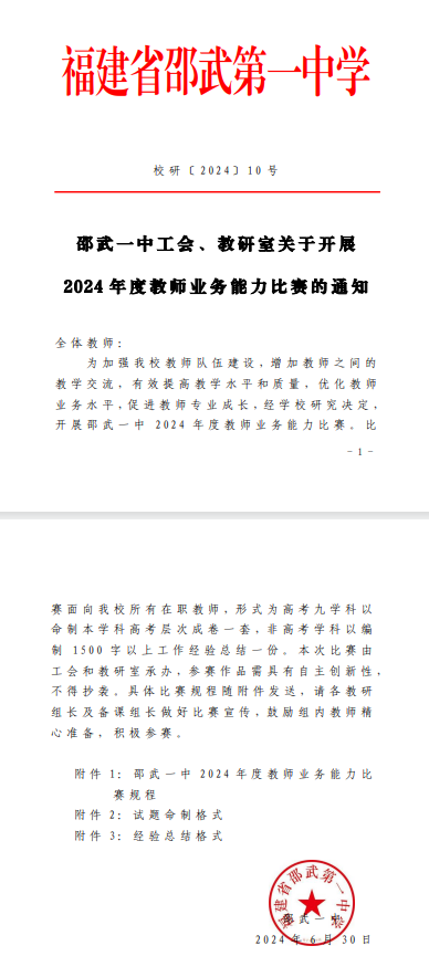 【瑞榴 • 工会活动 • 教师竞赛】以赛促教共成长 磨砺技能展风采——邵武一中成功开展2024年度教师业务能力比赛活动